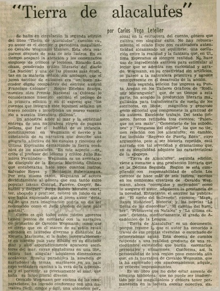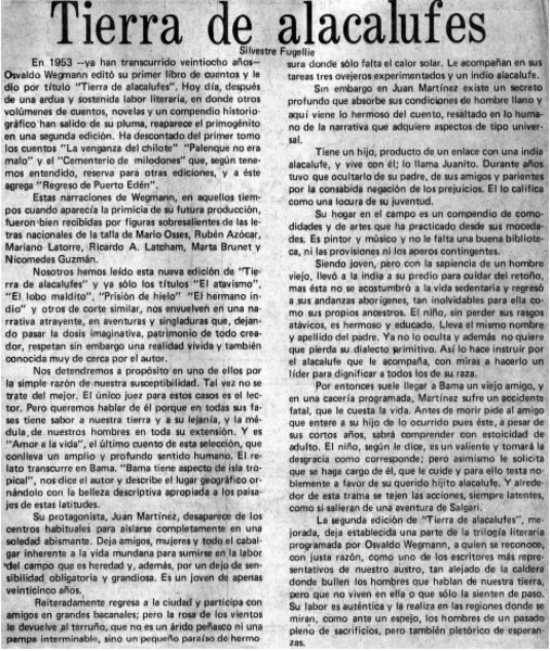 Tierra de Alacalufes [artículo] Silvestre Fugellie.
