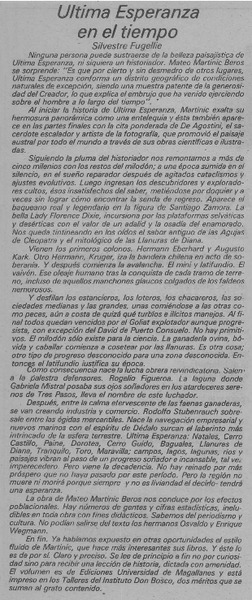 Ultima esperanza en el tiempo [artículo] Silvestre Fugellie.