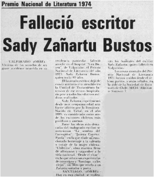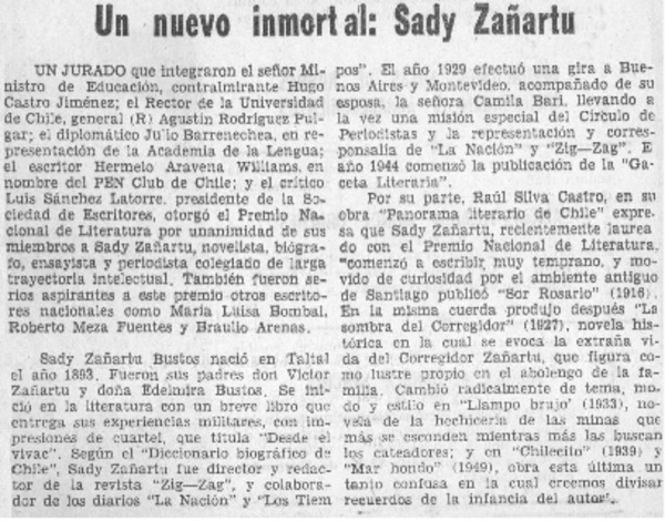 Un nuevo inmortal: Sady Zañartu. [artículo]