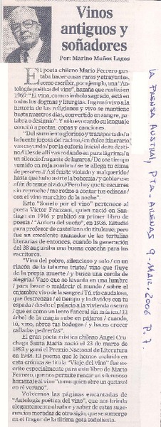 Vinos antiguos y soñadores [artículo] por Marino Muñoz Lagos.