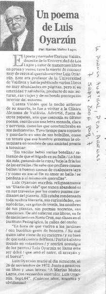 Un poema de Luis Oyarzún [artículo] por Marino Muñoz Lagos.