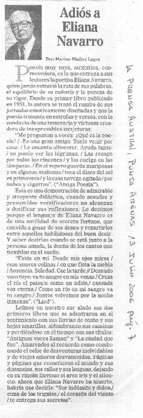 Adiós a Eliana Navarro [artículo]Marino Muñoz Lagos.
