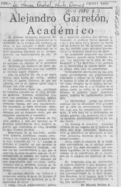 Alejandro Garretón, académico [artículo] Ricardo Walsen E.