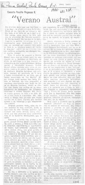 Autoras chilenas - Hamel, Teresa - Verano austral