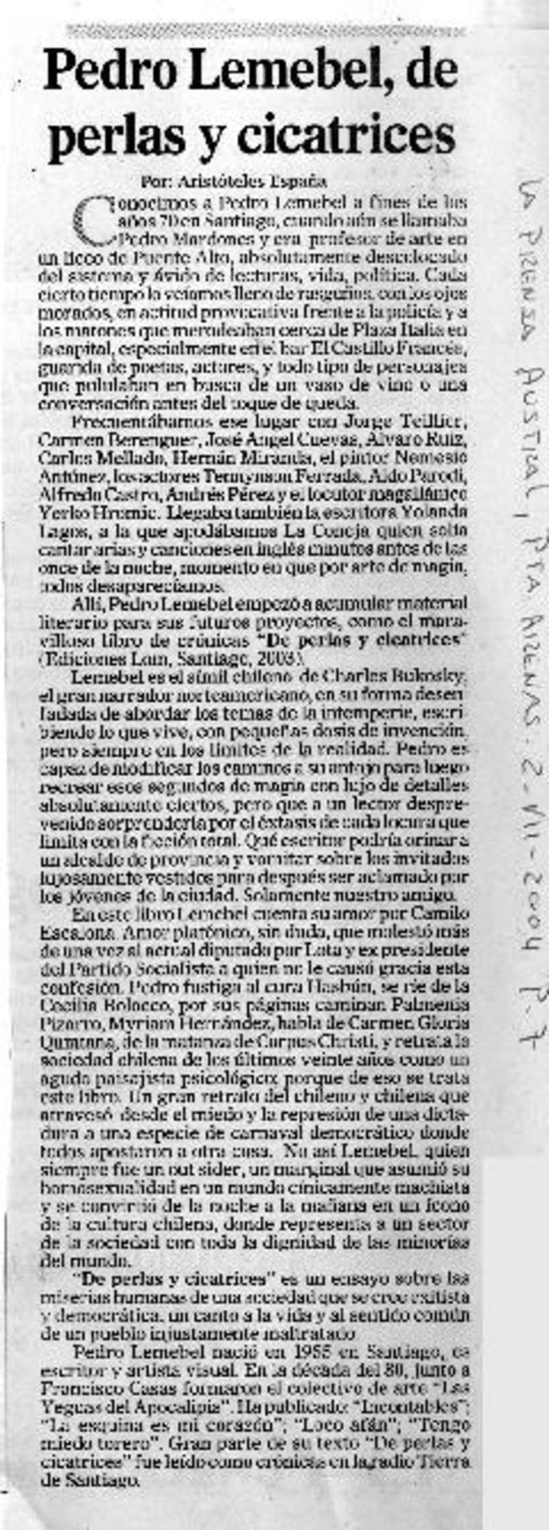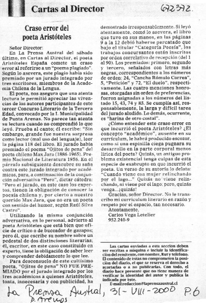 Autores chilenos - Vega Letelier, Carlos - España, Aristóteles