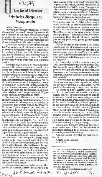 Aristóteles, discípulo de Macquiavello [artículo] Carlos Vega Letelier.