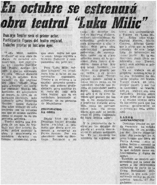 U. T. E. presentará la obra "Bernardo lo llama el pueblo". [artículo]