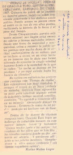 Tiempo de vigilia" [artículo] Marino Muñoz Lagos.