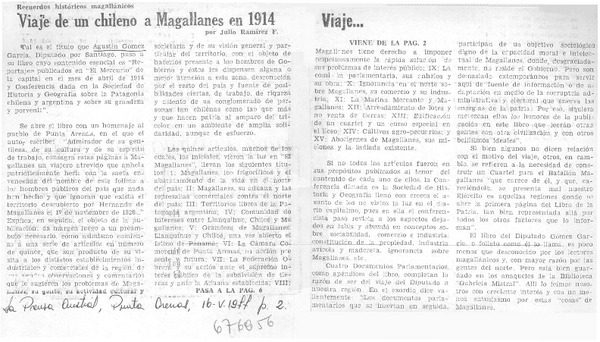 Viaje de un chileno a Magallanes en 1914 [artículo] Julio Ramírez Fernández.