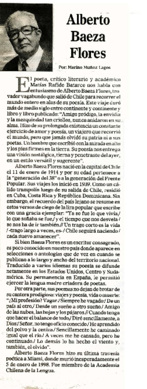 Alberto Baeza Flores [artículo] Marino Muñoz Lagos.