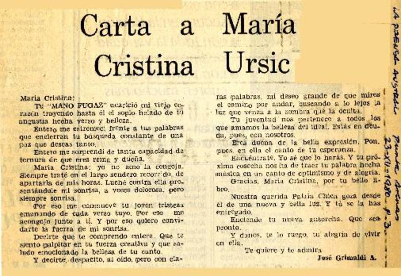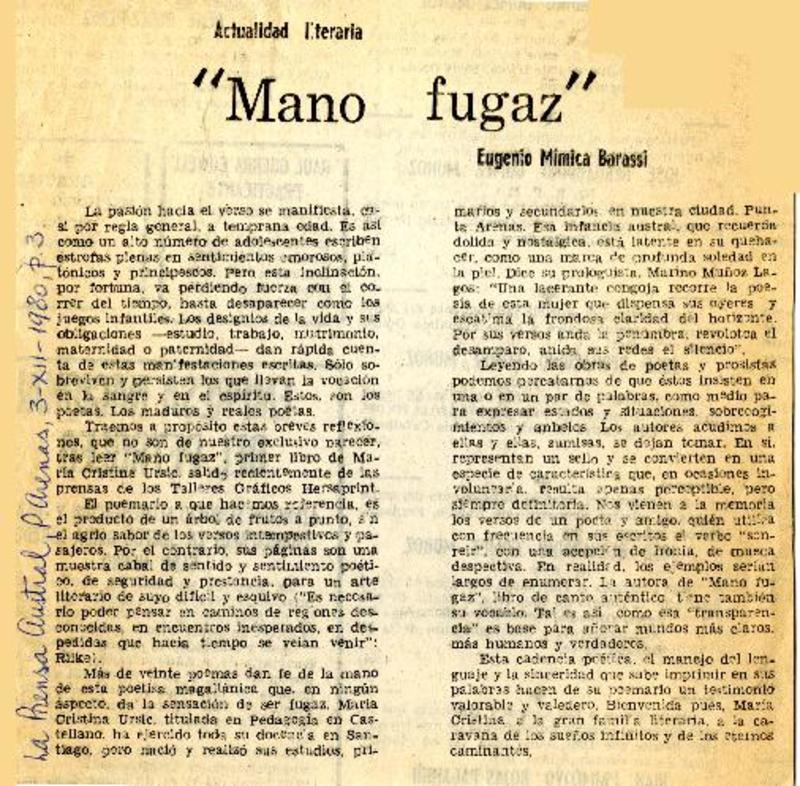 Autoras chilenas - Ursic, María Cristina - Mano fugaz
