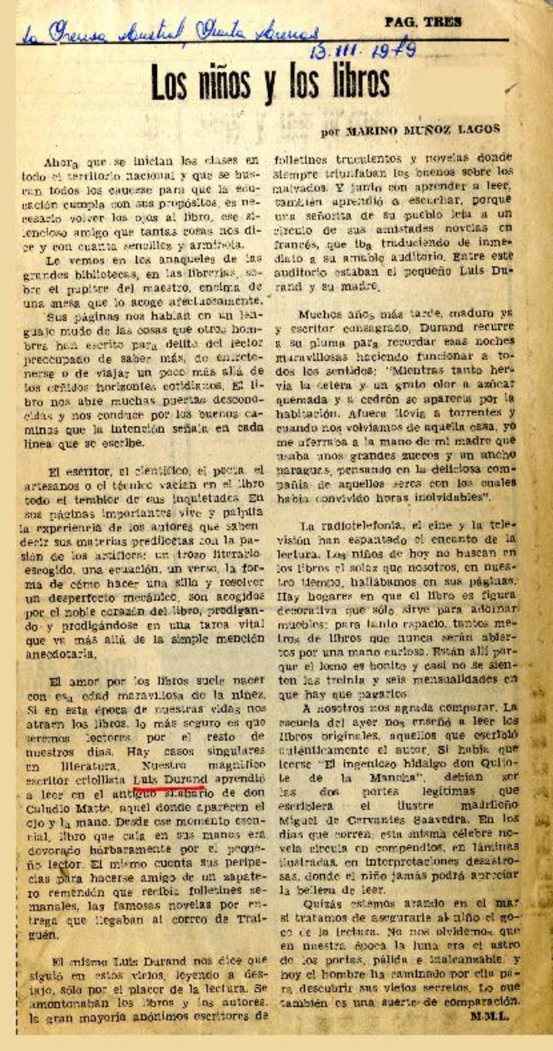 Un poeta de los niños [artículo] Marino Muñoz Lagos.