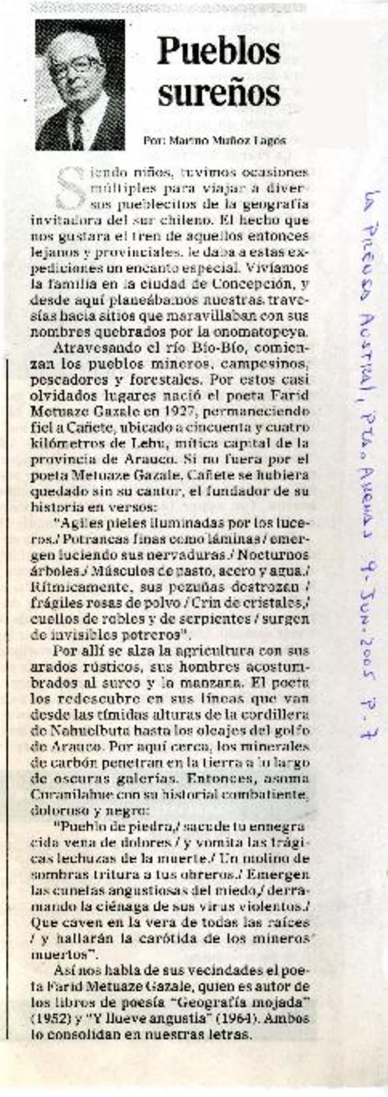 Un viejo poeta soñador [artículo]Marino Muñoz Lagos.