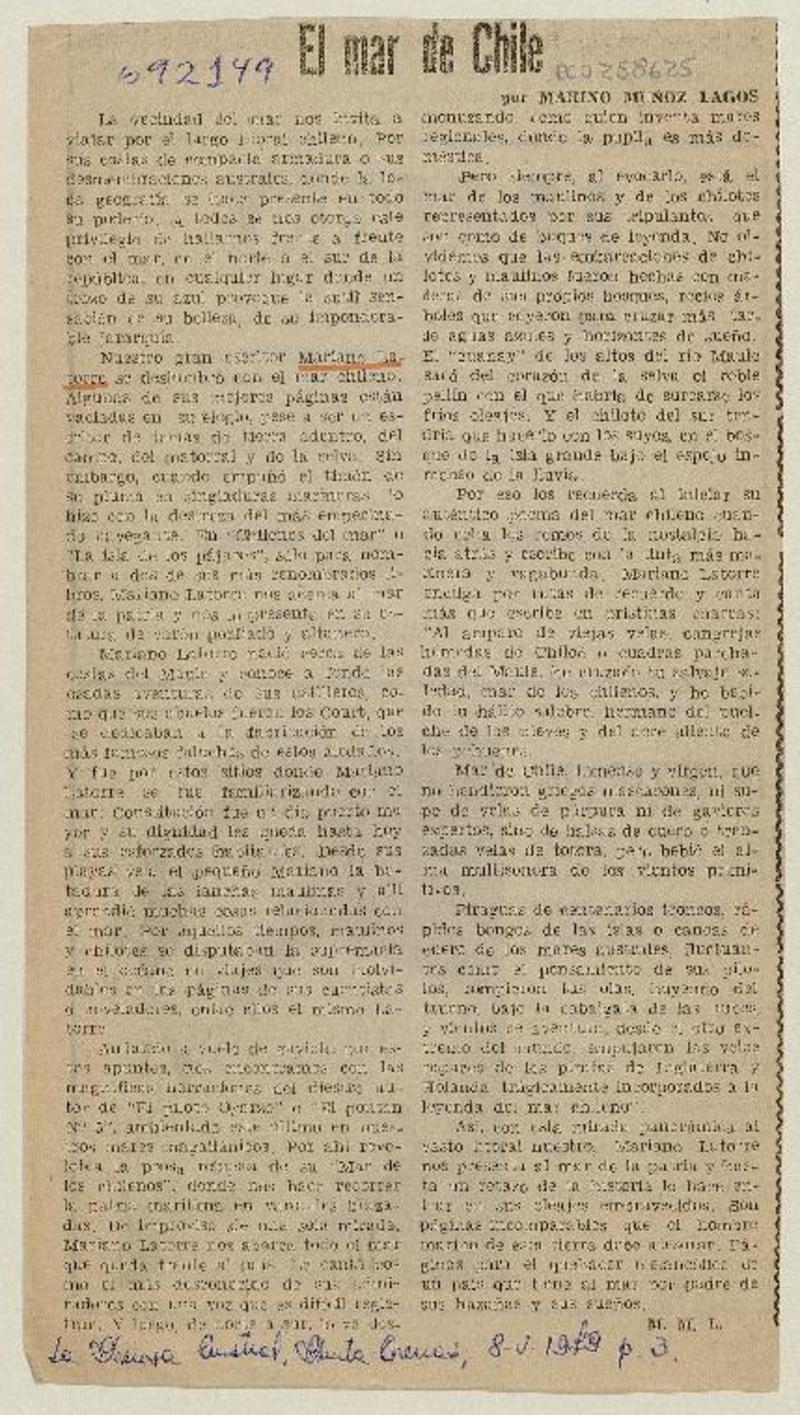 Un poeta junto al litoral [artículo]Marino Muñoz Lagos.