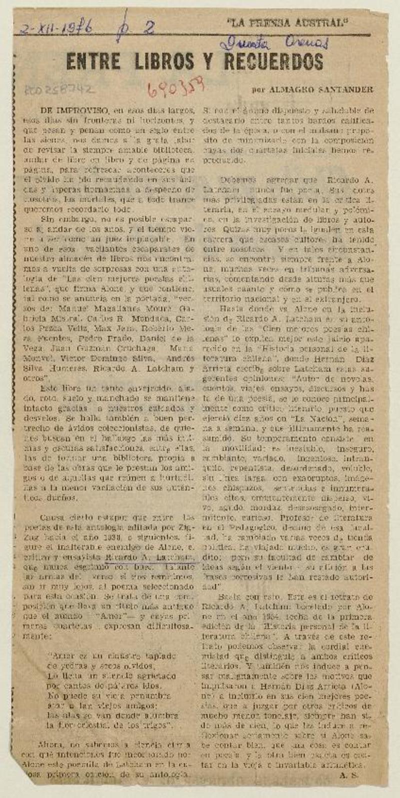 Una antigua antología americana [artículo] Marino Muñoz Lagos.