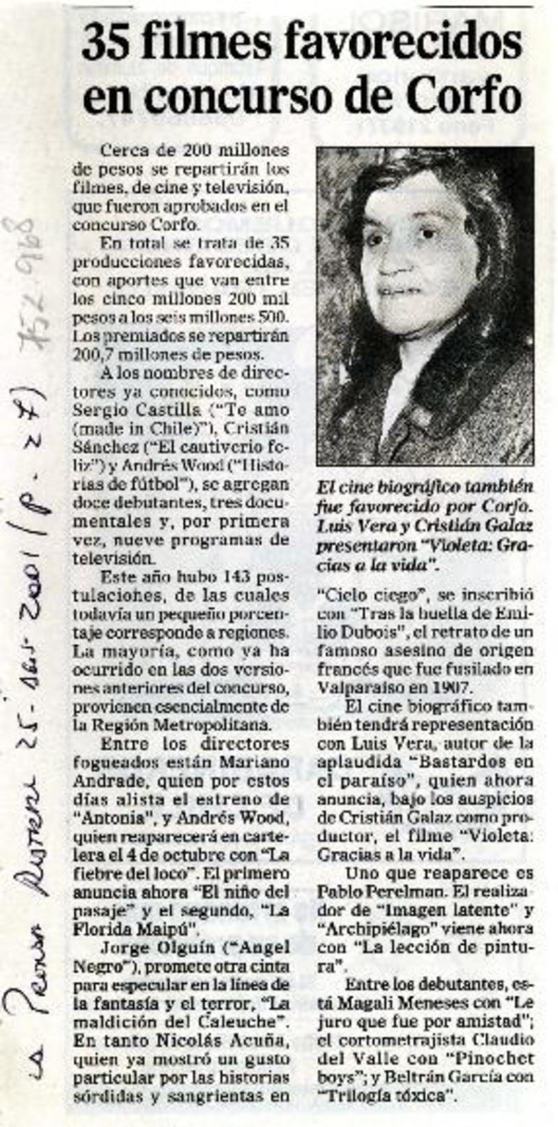 35 filmes favorecidos en concurso Corfo. [artículo]