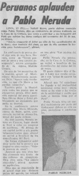 Peruanos aplauden a Pablo Neruda. [artículo]