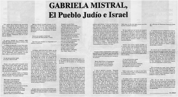 Gabriela Mistral, el pueblo judío e Israel [artículo] Gil Sinay.