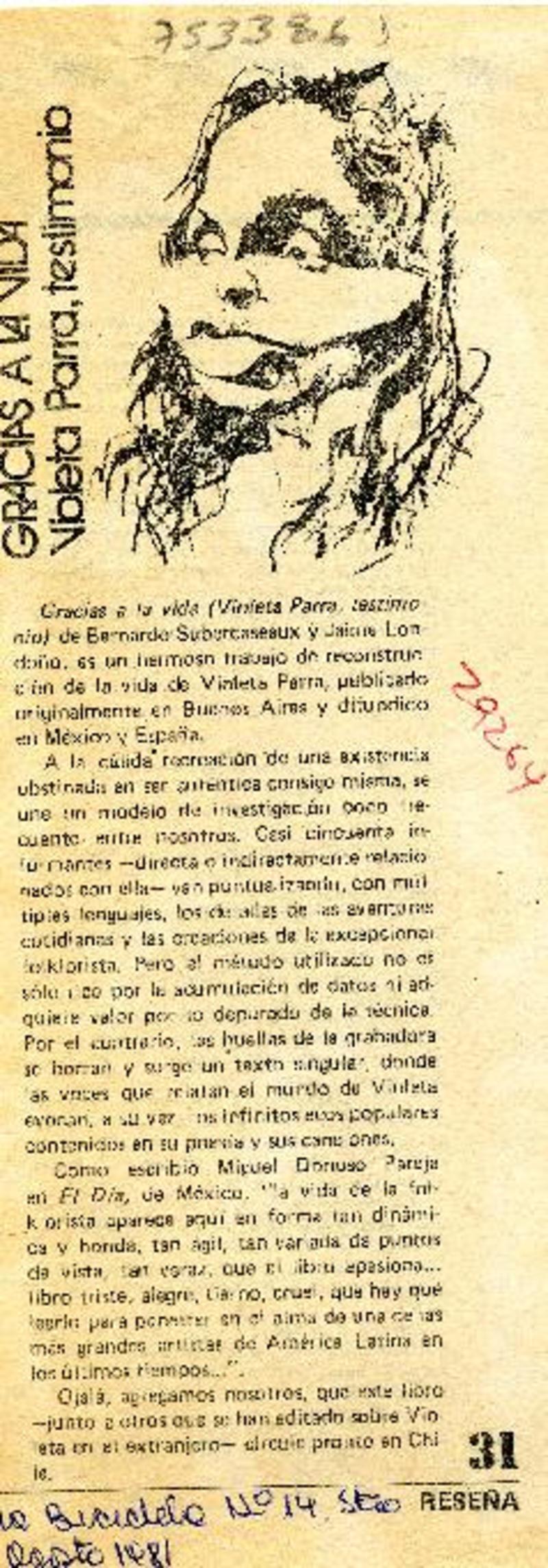 Gracias a la vida, Violeta Parra, testimonio [artículo]