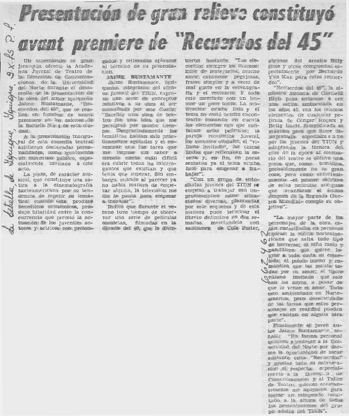 Presentación de gran relieve constituyó avant premiere de "Recuerdos del 45". [artículo]