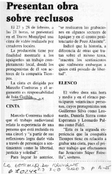 Presentan obra sobre reclusos. [artículo]