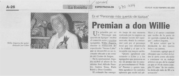 Premian a don Willie. [artículo]