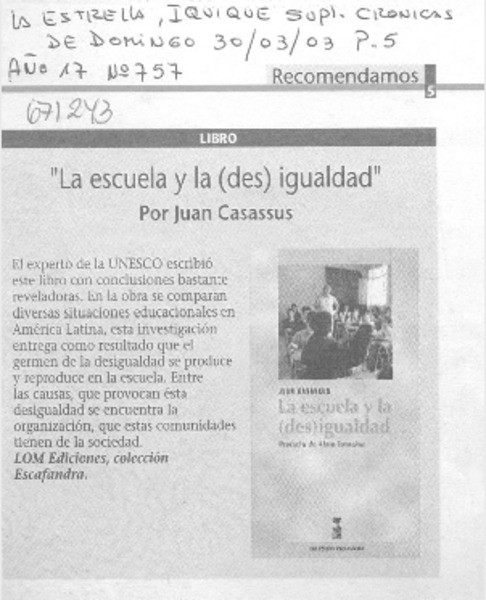 Autores chilenos - Casassus, Juan - Escuela y la (des) igualdad