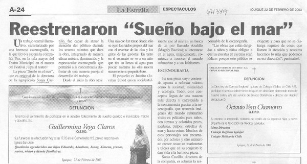 Reestrenaron "Sueño bajo el mar". [artículo]