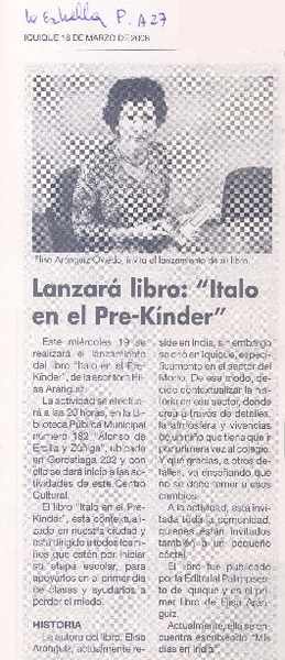 Lanzará libro: "Italo en el Pre-Kinder" [artículo].