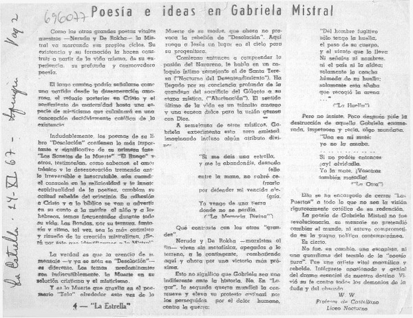 Poesía e ideas en Gabriela Mistral [artículo] W.W.