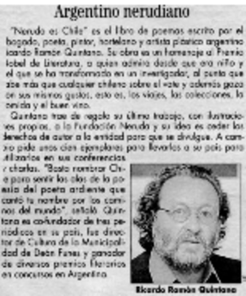 Autores chilenos - Quintana, Ricardo - Neruda es Chile