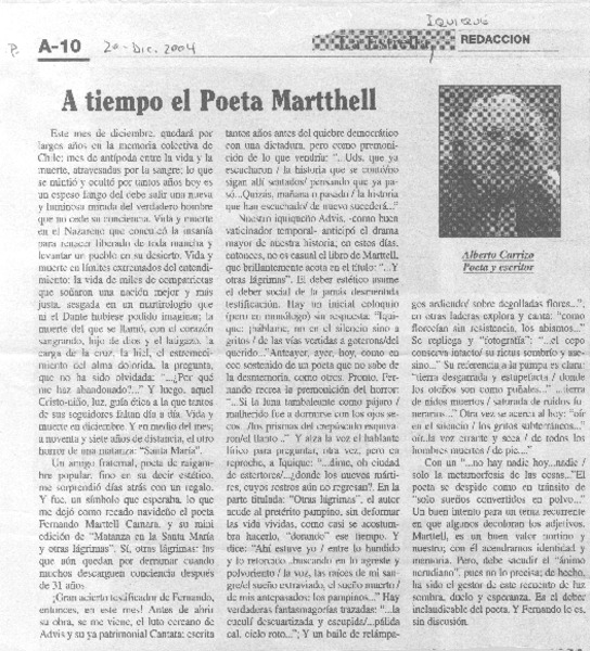 A tiempo el poeta Martthell [artículo] Alberto Carrizo