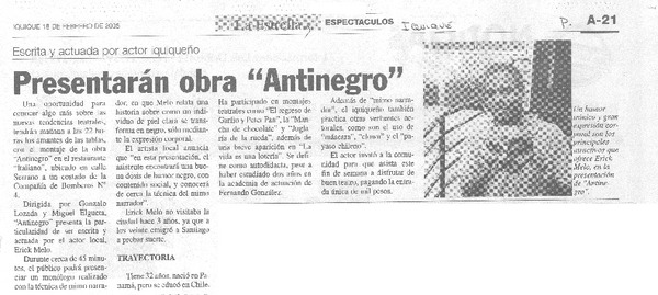 Presentarán obra "Antinegro" [artículo]