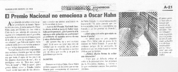 El Premio Nacional no emociona a Oscar Hahn [entrevista] [artículo]