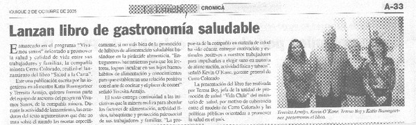 Lanzan libro de gastronomía saludable. [artículo]