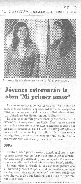 Jóvenes estrenarán la obra "Mi primer amor" [artículo]