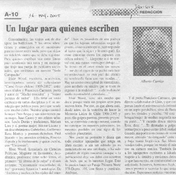 Un Lugar pra quienes escriben [artículo]Alberto Carrizo.