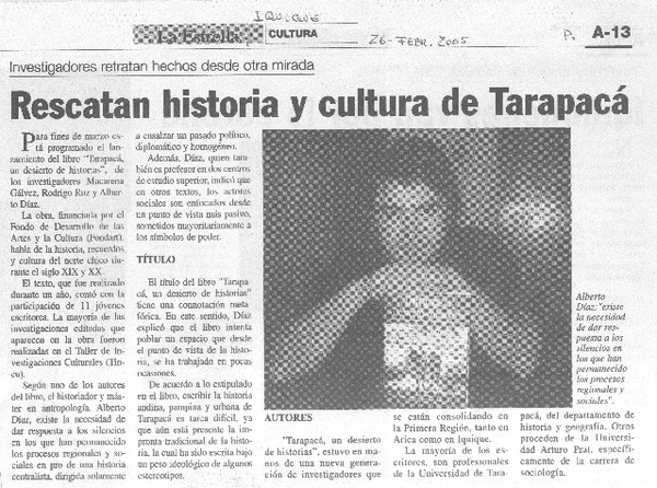 Rescatan historia y cultura de Tarapacá [artículo]