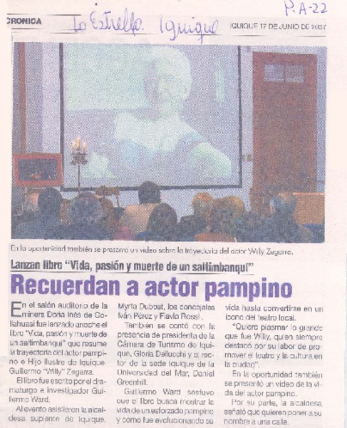 Recuerdad a actor pampino [artículo].
