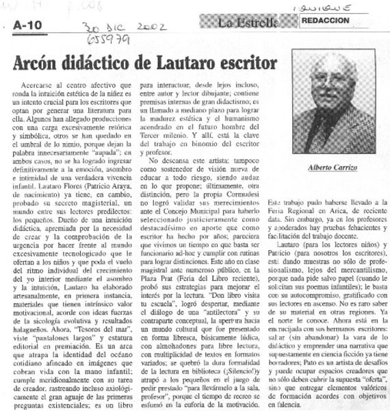 Arcón didaáctico de Lautaro escritor. [artículo] Alberto Carrizo.