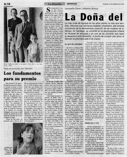 La doña de feminismo en Chile. [artículo]