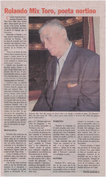 Rolando Mix Toro, poeta nortino [artículo] Pamela Izquierdo C.