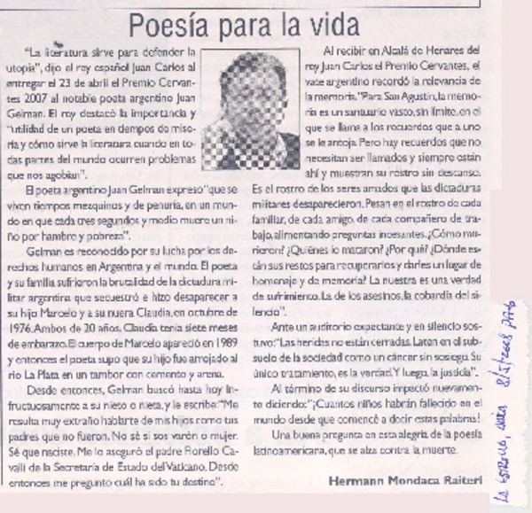 Poesía para la vida [artículo]Hermann Mondaca Raiteri.