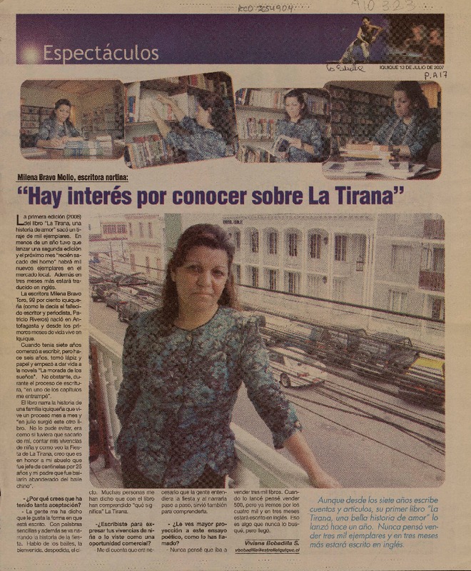 Milena Bravo Mollo, escritora nortina: "Hay interés por conocer sobre La Tirana" (entrevista) [artículo]Viviana Bobadilla S.