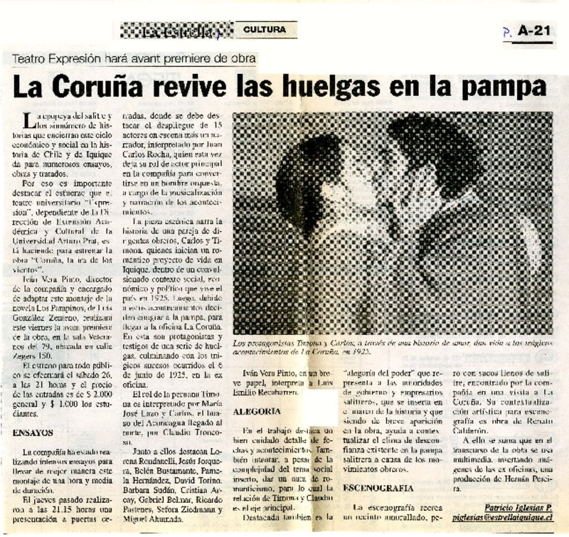 La Coruña revive las huelgas en la pampa [artículo] Patricio Iglesias P.