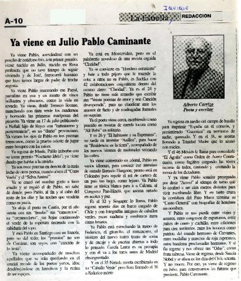 Iquique celebra el centenario de Neruda. [artículo]