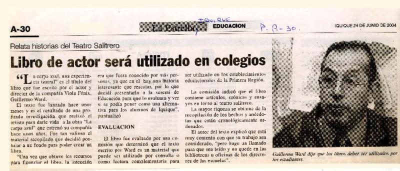 Libro de actor será utilizado en colegios [artículo]
