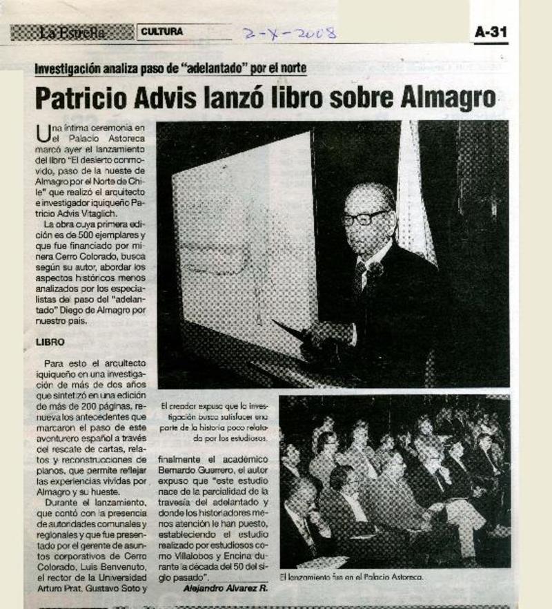 Patricio Advis lanzó libro sobre Almagro [artículo] Alejandro Alvarez R.