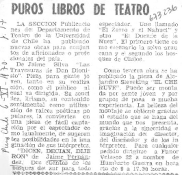 Autores chilenos - Sieveking, Alejandro - Silva, Jaime - Fernández, Jaime - Dicen, decían, dijeron - Travesuras de don Dionisio - Cheruve