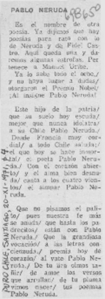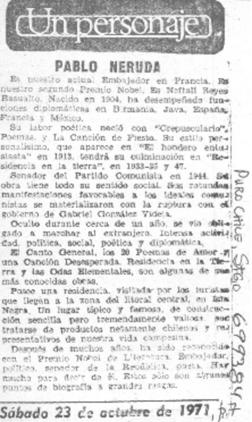 Pablo Neruda está como tuna y acaba de escribir otro libro. [artículo]